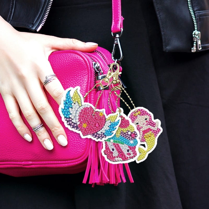 W zestawie jest 5 różnych wzorów breloczków do samodzielnego wyklejenia diamencikami. Gotowe breloczki tworzą świetną ozdobę torebki, plecaka, piórnika czy zawieszek do kluczy. Wyklejanie to doskonała i kreatywna zabawa zarówno dla dzieci, jak i dla dorosłych. Stwórz samodzielnie niepowtarzalne akcesoria!