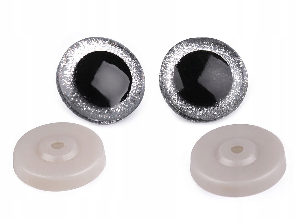 - w zestawie 2 komplety (1 para): oko + brokatowa tęczówka + zacisk.