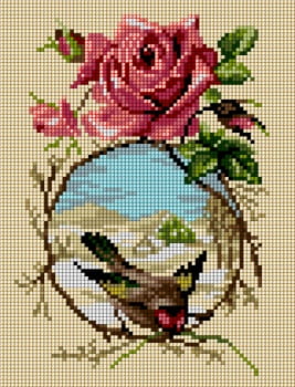 Kanwa z nadrukiem ptaszek i róża (5869)