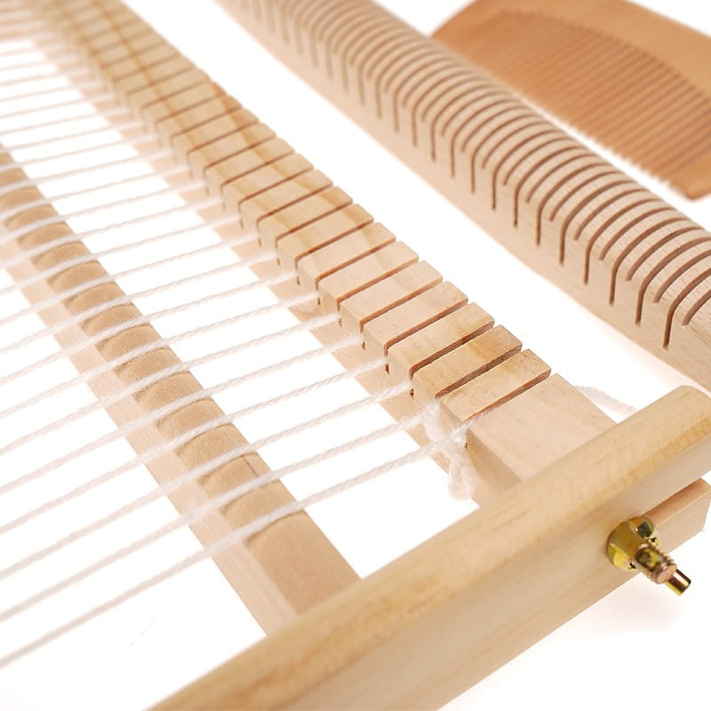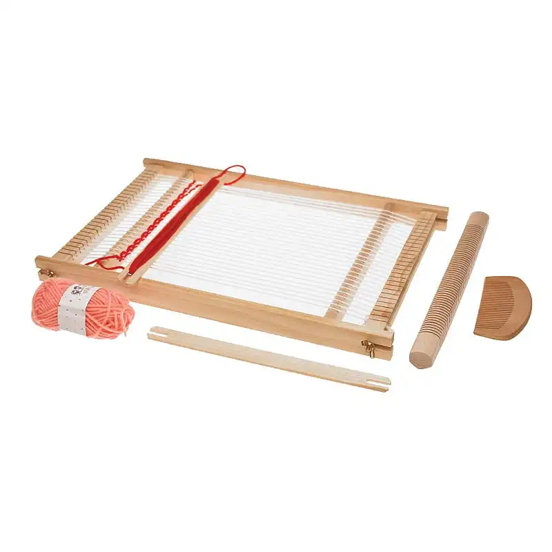 ☑️ Krosno posiada specjalne nacięcia na osnowę oraz grzebień, którym dociska się wełnę. Jest łatwe w obsłudze, a dzięki gładkim brzegom jest bezpieczne dla dzieci. Na drewnianym krośnie wykonuje się nie tylko makatki, ale również kilimy, które po wykonaniu można zszyć w jedną całość.