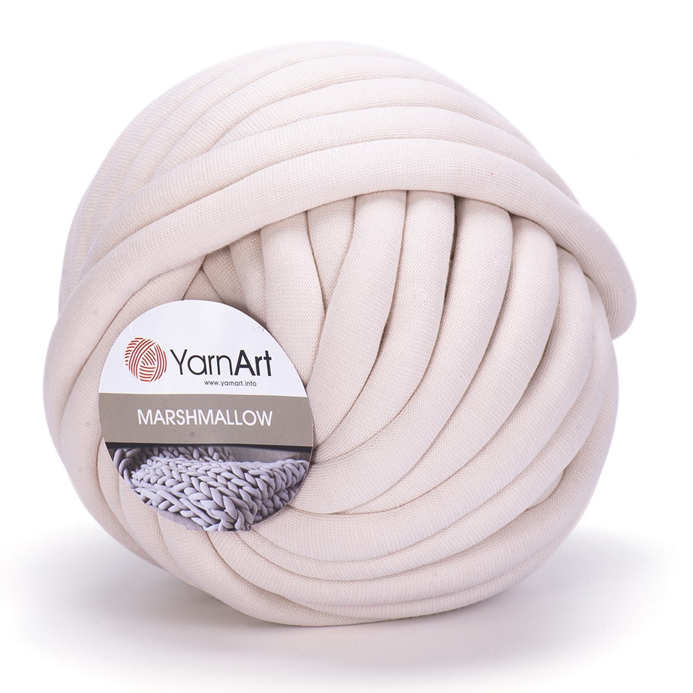Włóczka Marshmallow to nowość w ofercie Yarn Art. Gruby, bezszwowy tunel wykonany z bawełny i wypełniony miękkim i lekkim włóknem poliestrowym. Nadaje się do wykonywania poduszek, puf, kocyków, warkoczy i wianków. Zaplatać można własnymi rękami lub na grubych drutach.