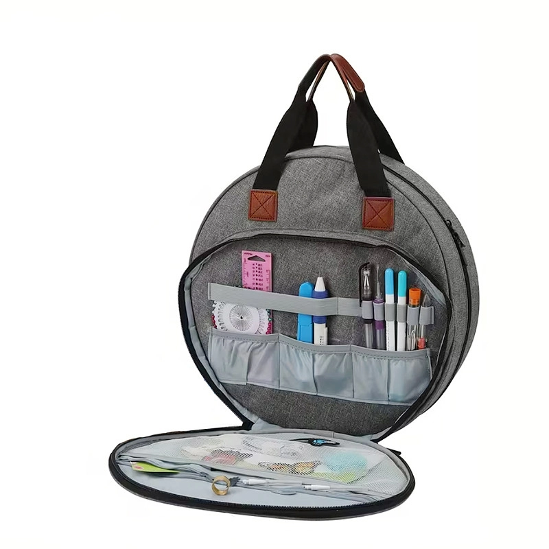 Okrągła torba dziewiarska na włóczki, tamborki i akcesoria