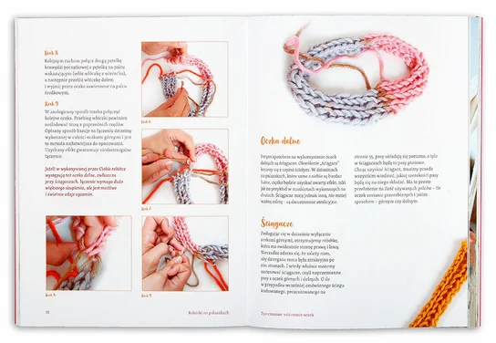 "Robótki na paluszkach" to pierwszy poradnik pokazujący, jak spleść szalik, czapkę lub torbę bez drutów i szydełka.