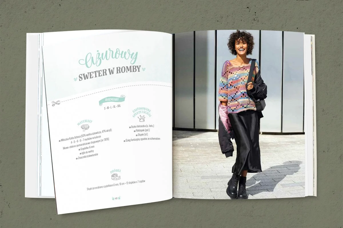 Opisy wzorów uzupełniają wskazówki i czytelne schematy graficzne przystępne dla każdego miłośnika dziergania.