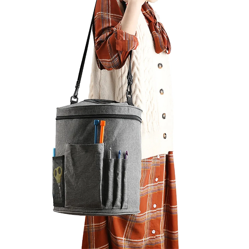 ☑️ Główna przegroda jest zapinana na zamek i posiada aż 4 podajniki do włóczki. Torba ma uchwyt oraz odpinany pasek na ramię. Wykonana jest z trwałego i wodoodpornego materiału 600D Oxford.