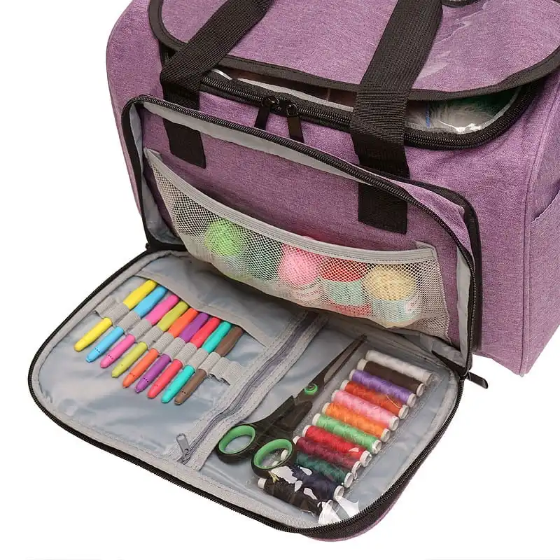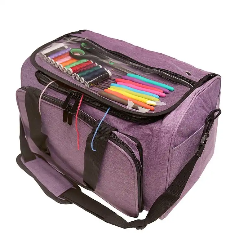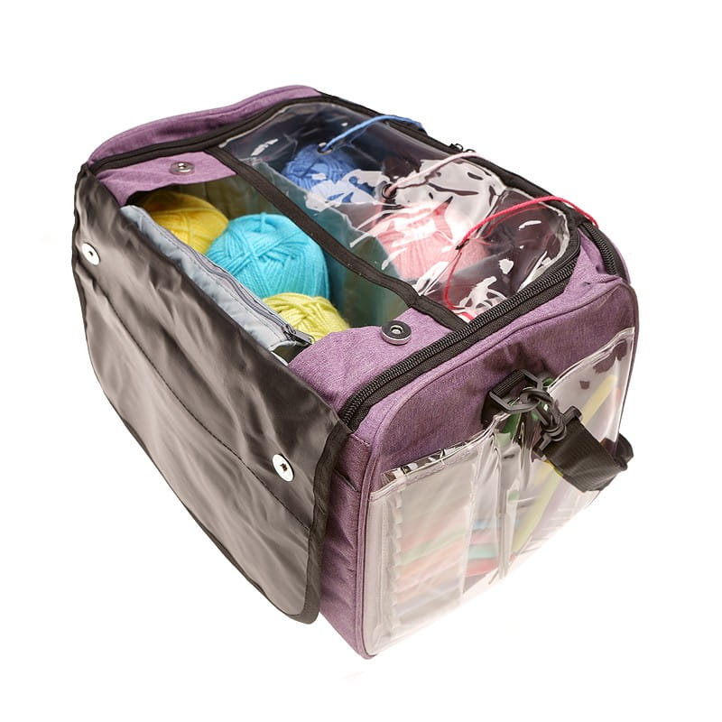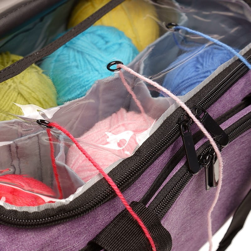☑️ Część kieszonek jest regulowana za pomocą specjalnej wkładki na rzepy. W głównej przegrodzie znajduje się przeźroczysty podajnik do włóczki. Torba posiada uchwyty oraz odpinany pasek na ramię. Wykonana jest z trwałego i wodoodpornego materiału 600D Oxford.