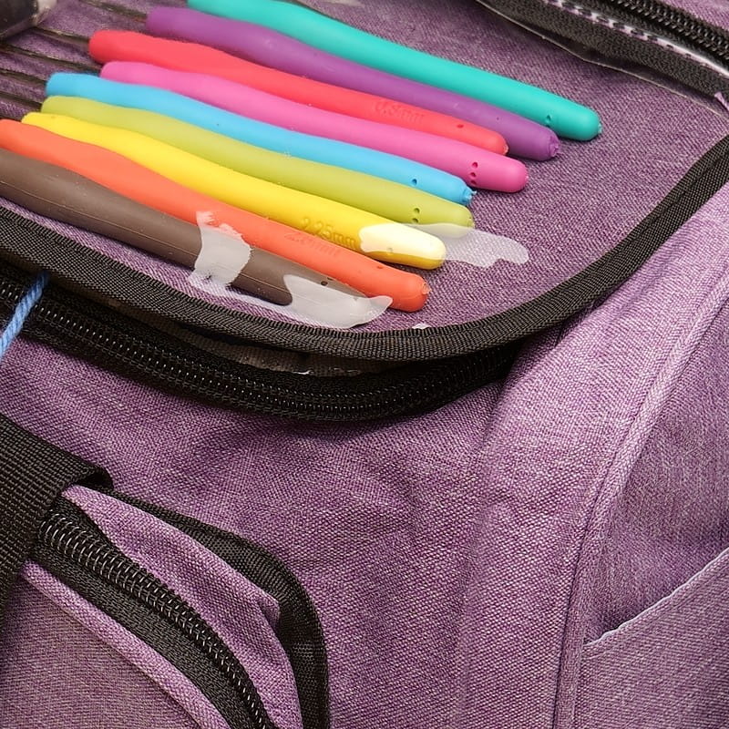 ☑️ Torba dziewiarska jest bardzo przydatnym organizerem dla każdego rękodzielnika. Posiada liczne przegródki, kieszonki zapinane na zamek i na kapsle oraz przelotki, dzięki czemu wszystkie narzędzia i materiały są posegregowane i łatwo znaleźć to, czego się szuka.