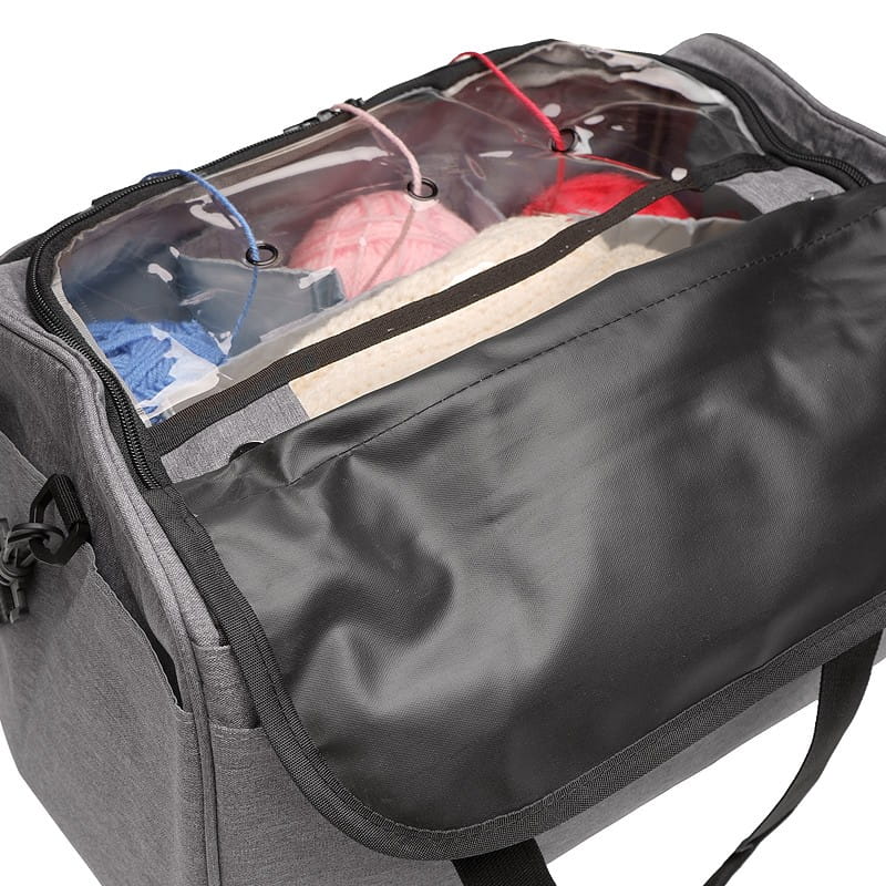 ☑️ Część kieszonek jest regulowana za pomocą specjalnej wkładki na rzepy. W głównej przegrodzie znajduje się przeźroczysty podajnik do włóczki. Torba posiada uchwyty oraz odpinany pasek na ramię. Wykonana jest z trwałego i wodoodpornego materiału 600D Oxford.
