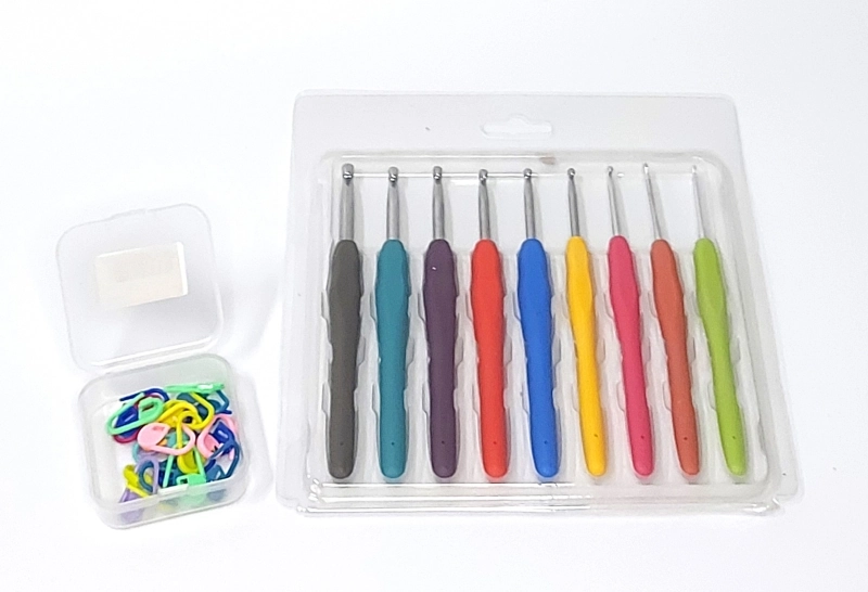 - komplet 9 szydełek z silikonową rączką w rozmiarach 2mm - 6mm,