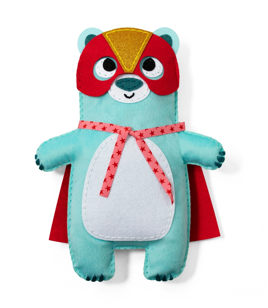 ⭐️ Miś Charlie jest superbohaterem w przebraniu - w zestawie znajduje się pelerynka i maska do uszycia z filcu oraz ubranko, które można zakładać i zdejmować.
