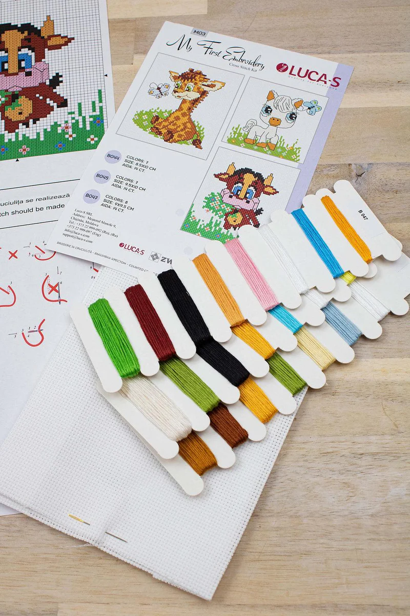 Zestawy do nauki haftu krzyżykowego dla dzieci LUCA-S M03 - krówka, żyrafa, konik